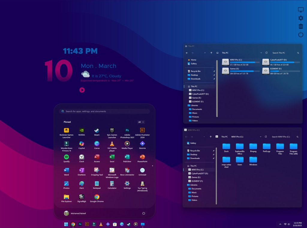 Windows 12 heeft een grote doorbraak in visueel ontwerp behaald. Microsoft heeft de traditionele elementen van Windows 11 verworpen en een strakker, moderner ontwerp geïntroduceerd. De nieuwe interface legt de nadruk op vloeiende overgangseffecten en diepere kleurcombinaties, waardoor het besturingssysteem levendiger en meeslepender aanvoelt. Tegelijkertijd zijn de vensters en taakbalken van het systeem modulair ontworpen, zodat gebruikers de weergave kunnen aanpassen aan hun persoonlijke voorkeuren, wat de interactie-ervaring verder verbetert. - AI-gestuurde prestatie-optimalisatie